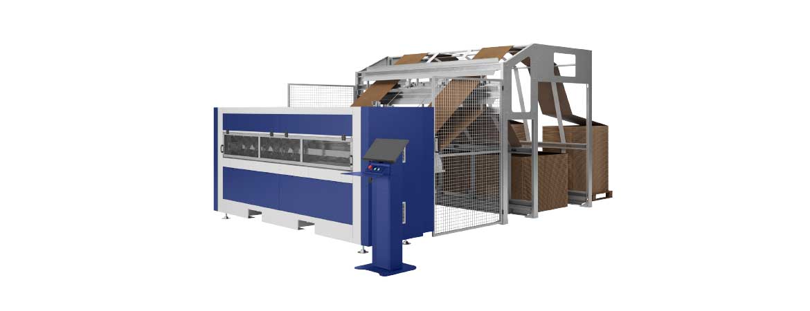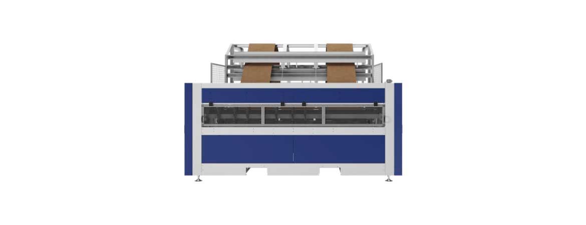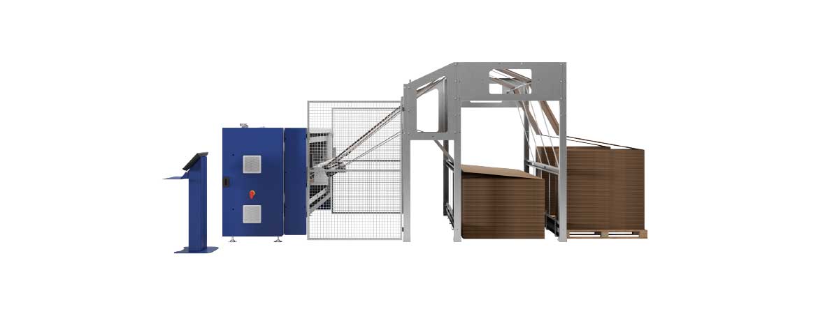 Dvě inline kartonové kazety pro uložení vějíře, z nichž každá je navržena pro umístění 2 kartonových modulů vedle sebe (režim Side by Side), čímž se zdvojnásobí kapacita na 4 kartony. S touto konfigurací stroj automaticky vybere nejvhodnější velikost z dostupných, aby optimalizoval spotřebu lepenky.